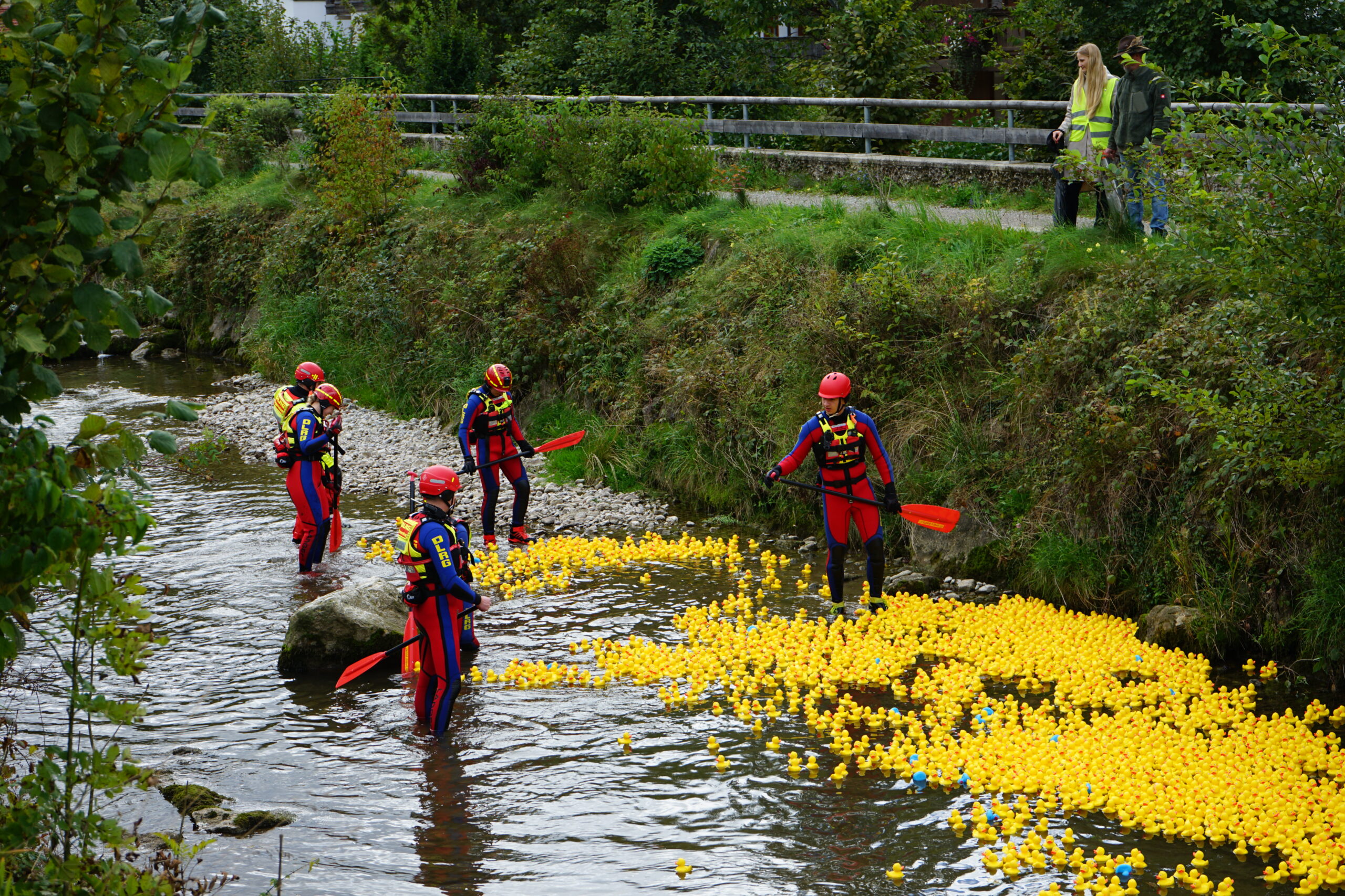 Das Tegernseer Entenrennen ist ein buntes Benefizevent für die ganze Familie. Tausende nummerierte Gummienten gehen auf der Rottach ins Rennen – für den guten Zweck. Jede Ente gehört einer Rennlizenz, und wer eine Lizenz hat, kann tolle Preise gewinnen.